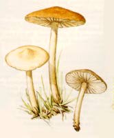 | Apró, fehér spórás, domború vagy lapos kalapú gombák. Lemezeik ritkán állók, fehéresek, krémszínûek, okkeresek, nem lefutók. | |